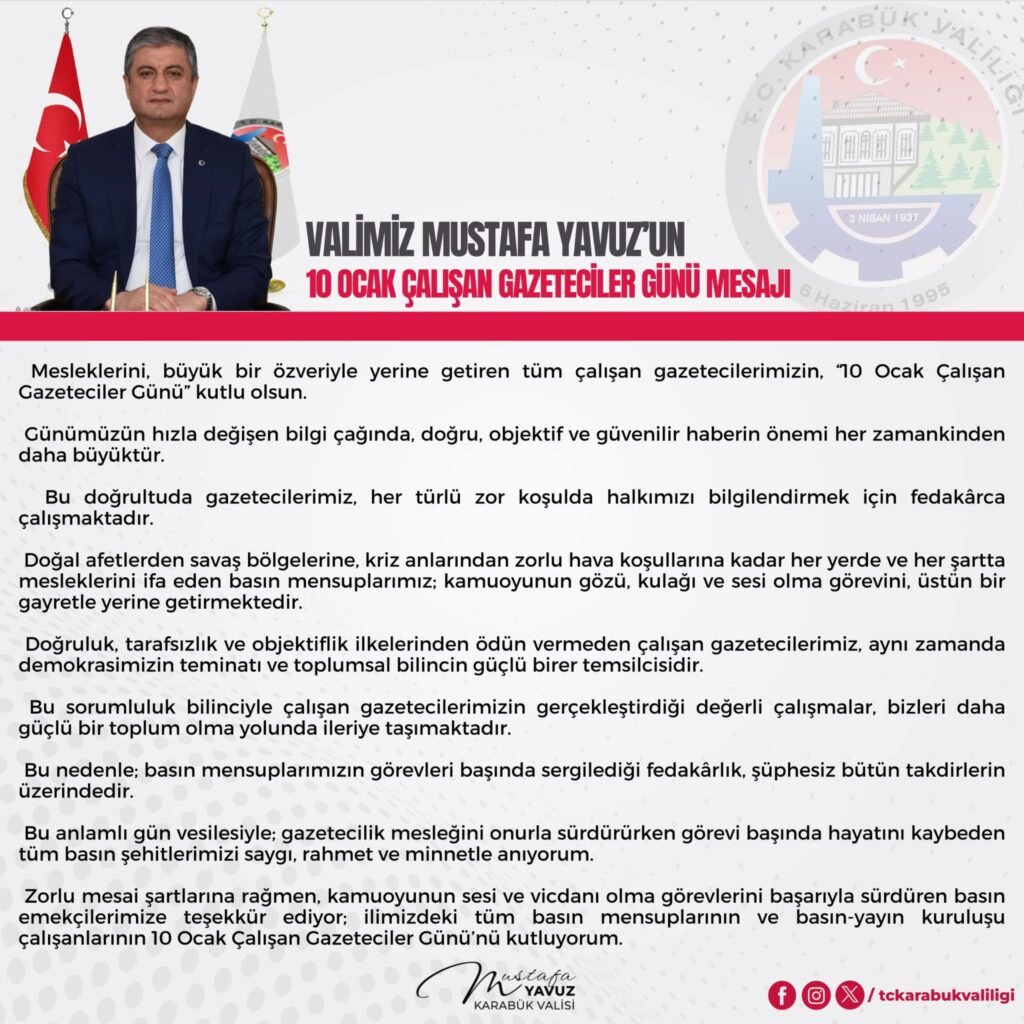 Karabük Valisi Sayın Mustafa Yavuz’un 10 Ocak Çalışan Gazeteciler Günü Mesajı.