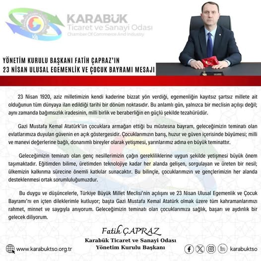 Fatih Çapraz’dan 23 Nisan Ulusal Egemenlik ve Çocuk Bayramı Mesajı